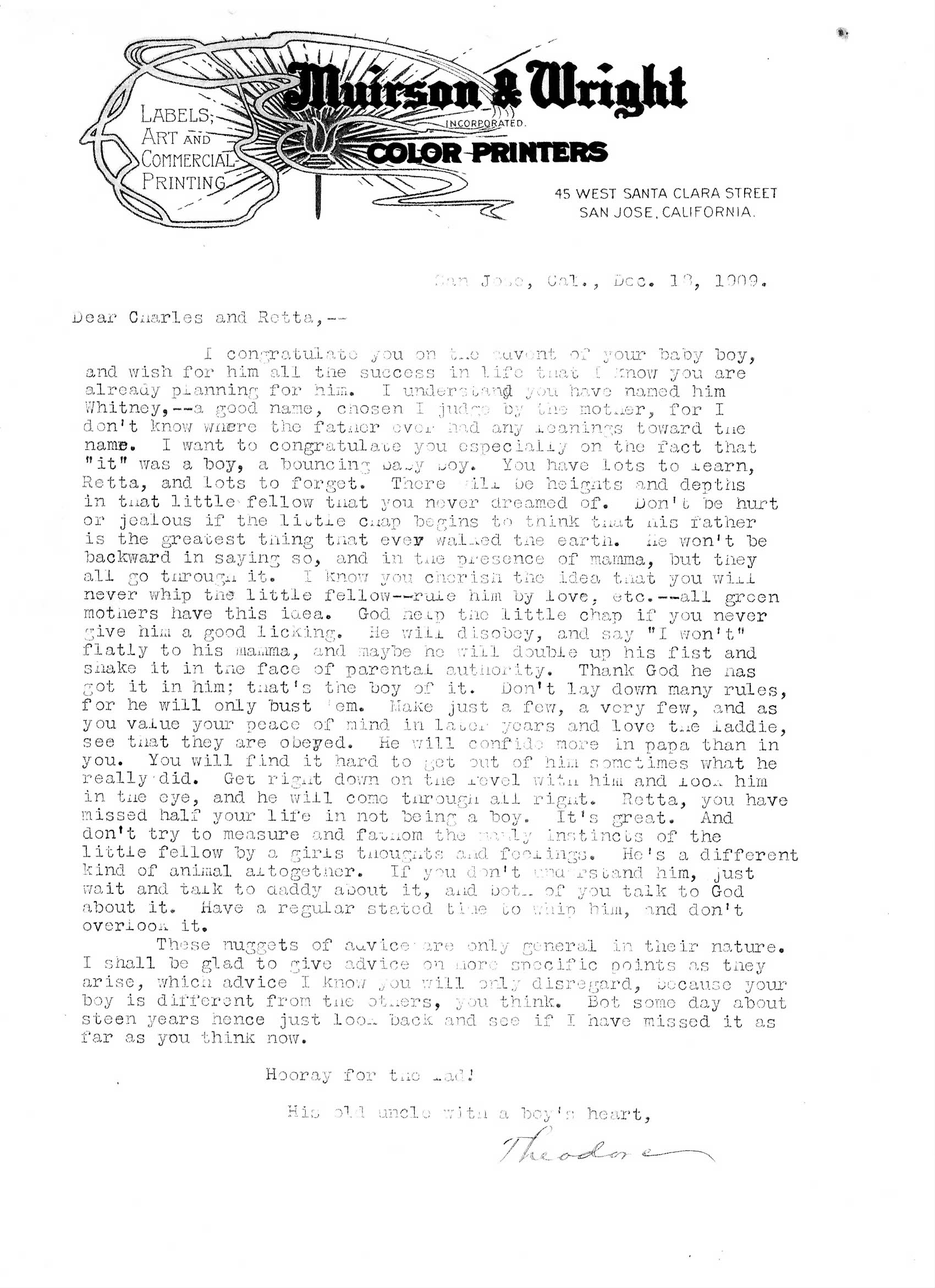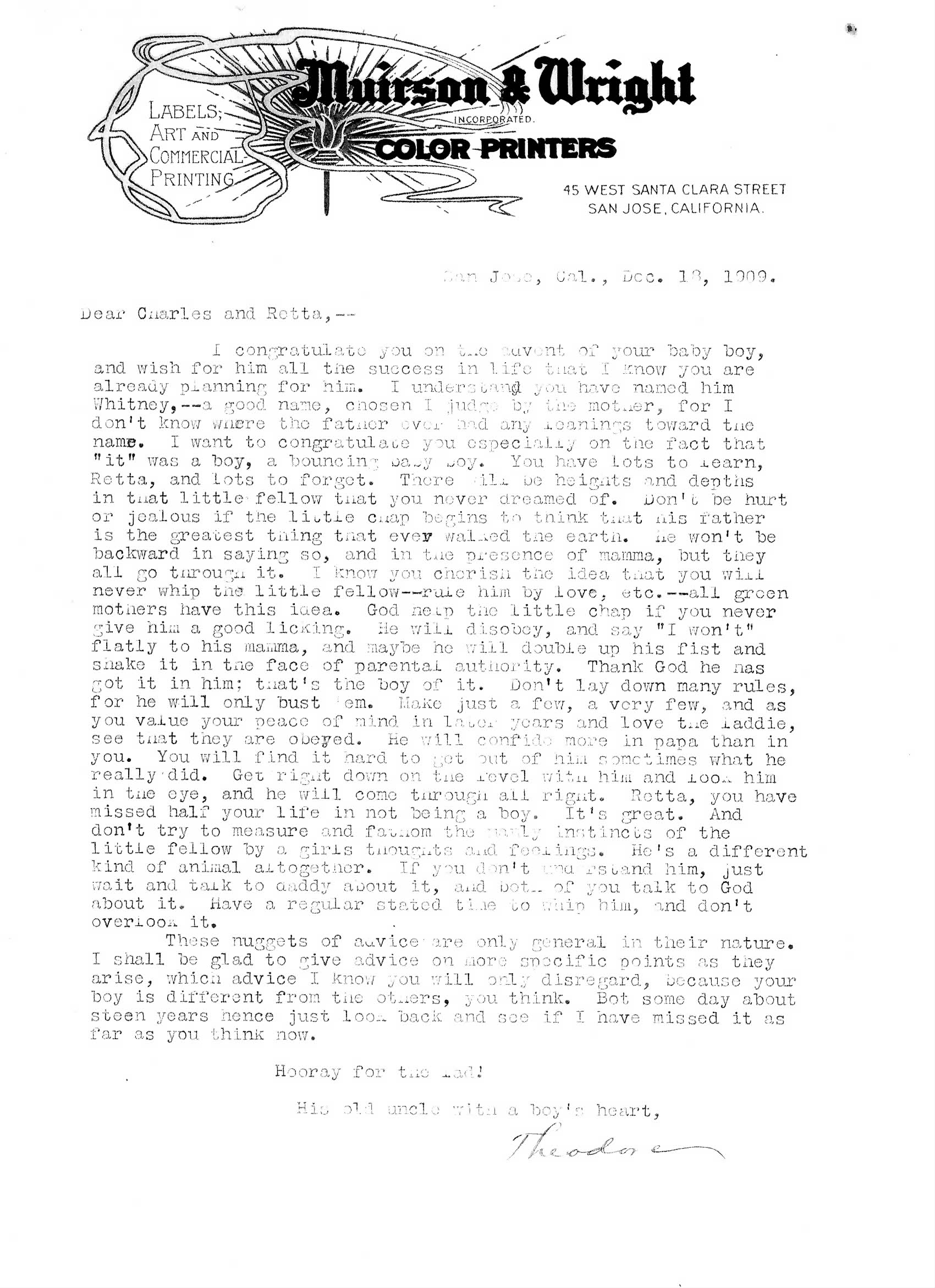 Letter about Whitney's birth |