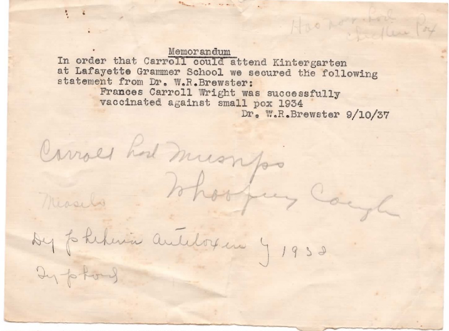 Buffy's school immunization note |
